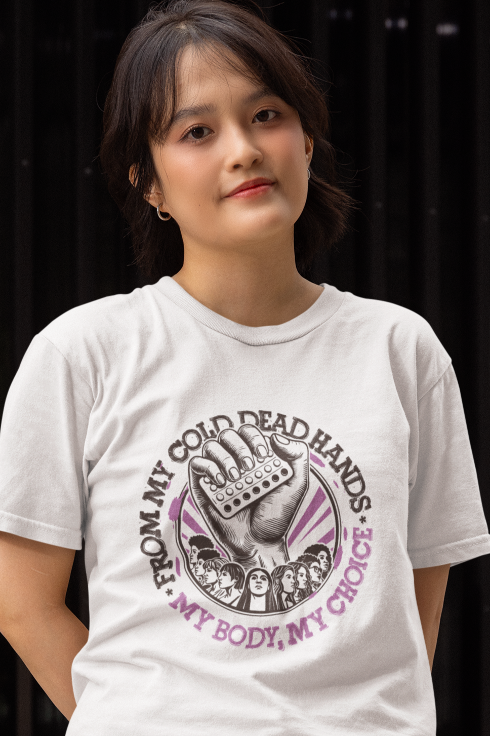 Show your strength and stand up for your rights! Whether you're at a rally, out and about, or just hanging with friends, this tee is perfect for defiant women and allies who refuse to back down.